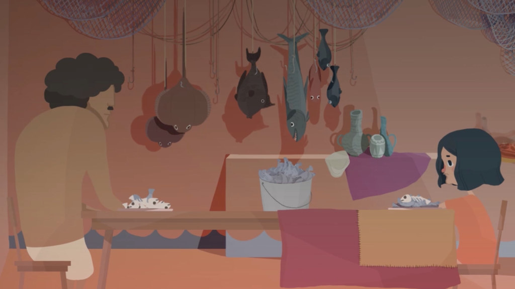 Every day, Father comes home carrying the catch of fish, Then he insists that his daughter eat those fish.